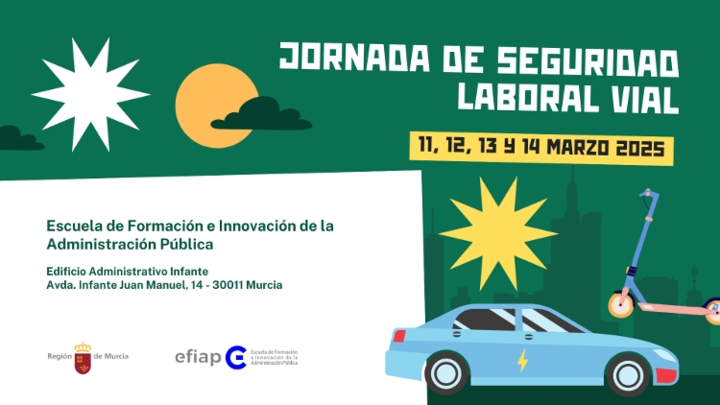La Escuela de Formación e Innovación de la Administración Pública (EFIAP) y el Servicio de Prevención de Riesgos Laborales Coordinador han organizado una Jornada sobre Seguridad Laboral Vial de 3 horas de duración. Para que pueda realizarla el mayor número de personas, se va a repetir durante cuatro días consecutivos (del 11 al 14 de marzo), de forma que se llevarán a cabo dos ediciones por día con 16 asistentes por edición.
